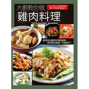雞肉是台灣人最常吃的肉類之一,肉質鮮嫩、營養價值高,適合做成各式料理,像是油雞、醉雞、三杯雞、白斬雞、椒麻雞等等。本單元要將你最想吃的雞肉一次收錄,從家常的雞肉料理開始,再加上餐廳必點的雞肉料理、路邊攤小吃雞肉料理,總共收錄了189道的美味菜色,讓你天天吃雞肉都有變化,自己吃不膩,就算請客時也不怕沒菜色。